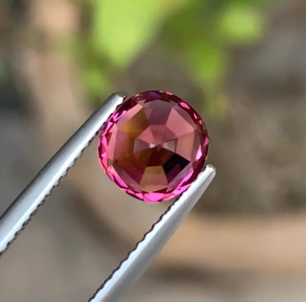 This 2.10-carat tourmaline, hailing from Afghanistan, is a stunning gemstone with a vibrant bubble gum pink color. Its clarity is rated as “very, very slightly included,” meaning it appears nearly flawless to the naked eye, with only minor inclusions visible under magnification. The stone is round and faceted, a classic shape that enhances its brilliance and makes it a popular choice for various jewelry designs. Given its size and quality, this tourmaline would make an eye-catching centerpiece in rings, pendants, or earrings, offering both beauty and versatility.